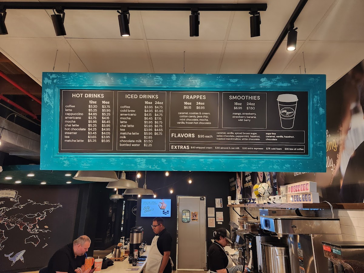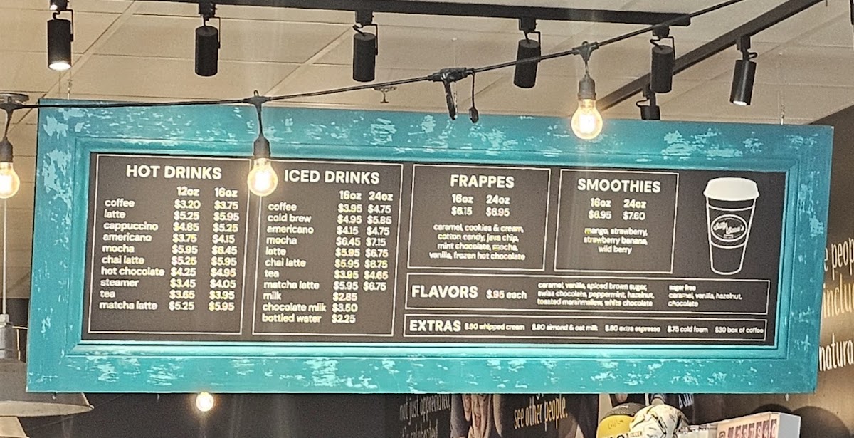 The menu features a delightful array of hot drinks, including expertly crafted lattes ($5.25), mochas ($5.95), and flavorful chai lattes ($5.25). Don't miss their signature Cookies & Cream Frappe, which has garnered rave reviews from customers for its rich flavor.